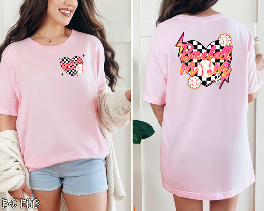 Baseball Mom Checkered Heart DTF TRANSFER