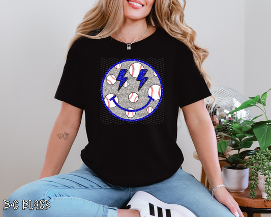 Baseball Smiley Blue DTF TRANSFER