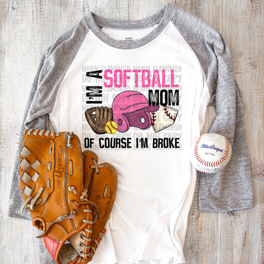 I'm A Softball Mom Of Course I'm Broke DTF TRANSFER