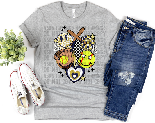 Retro Softball Collage | Multiple Colors | DTF TRANSFER
